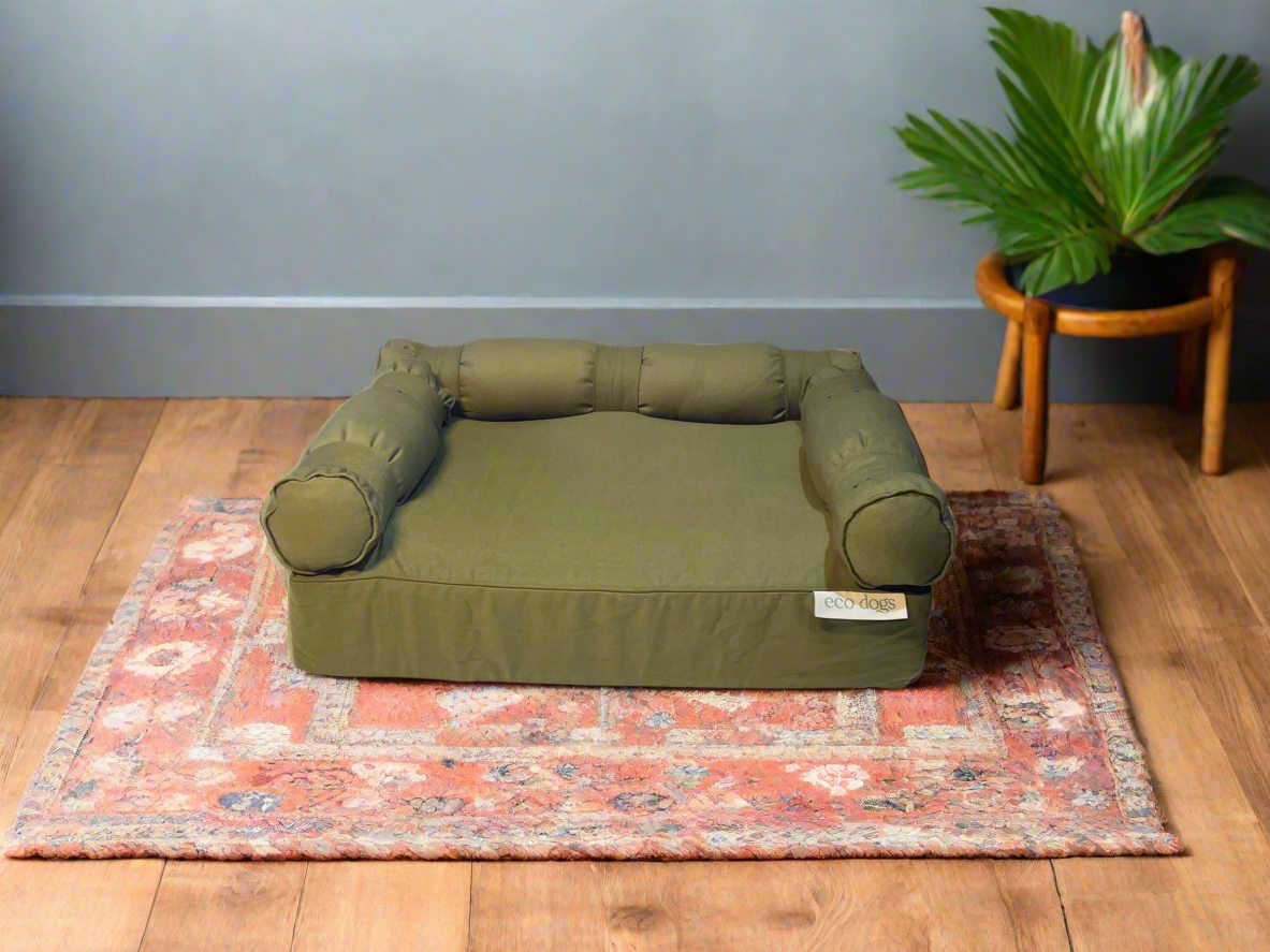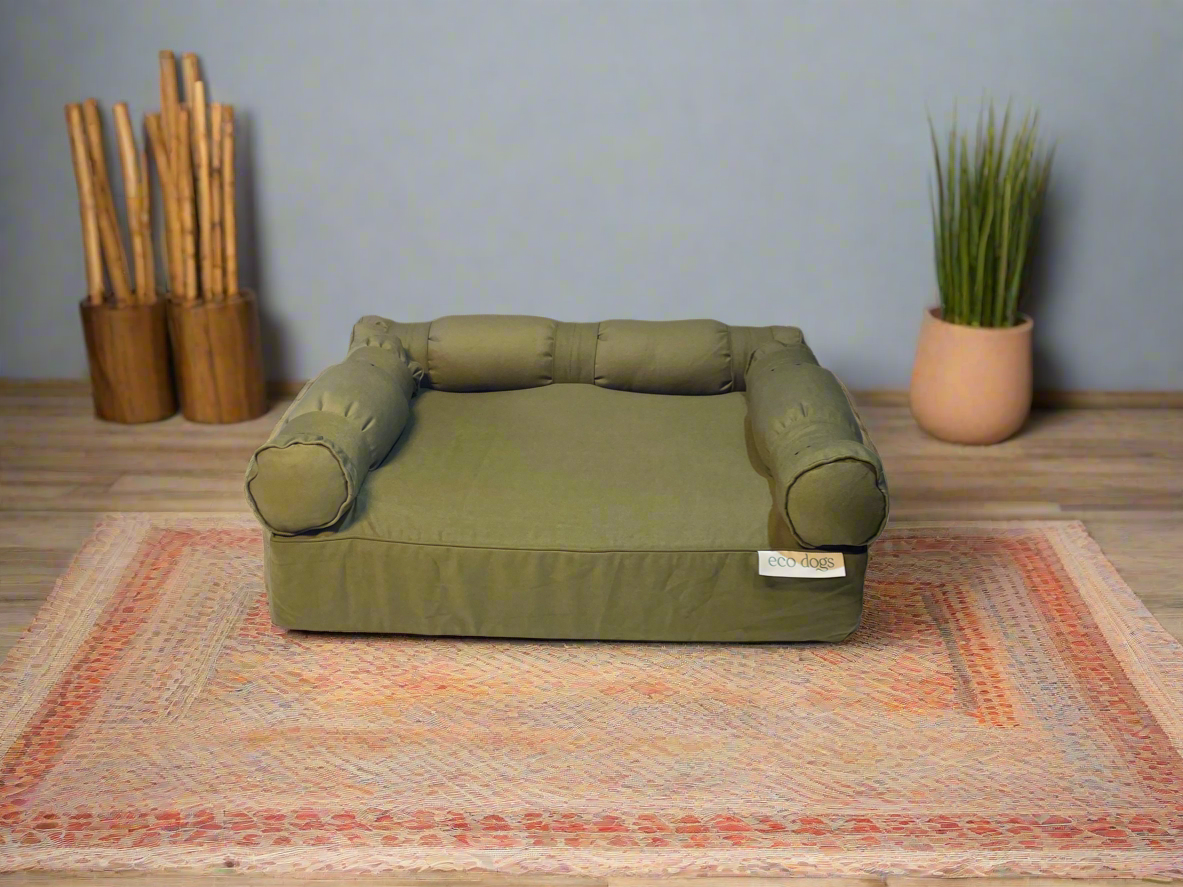 The three bolster cushions provide additional support for lounging and make the dog bed inviting at any time of day or night. This eco-friendly dog bed combines both functionality and comfort. Choose comfort, style, and sustainability with our eco-friendly dog bed.