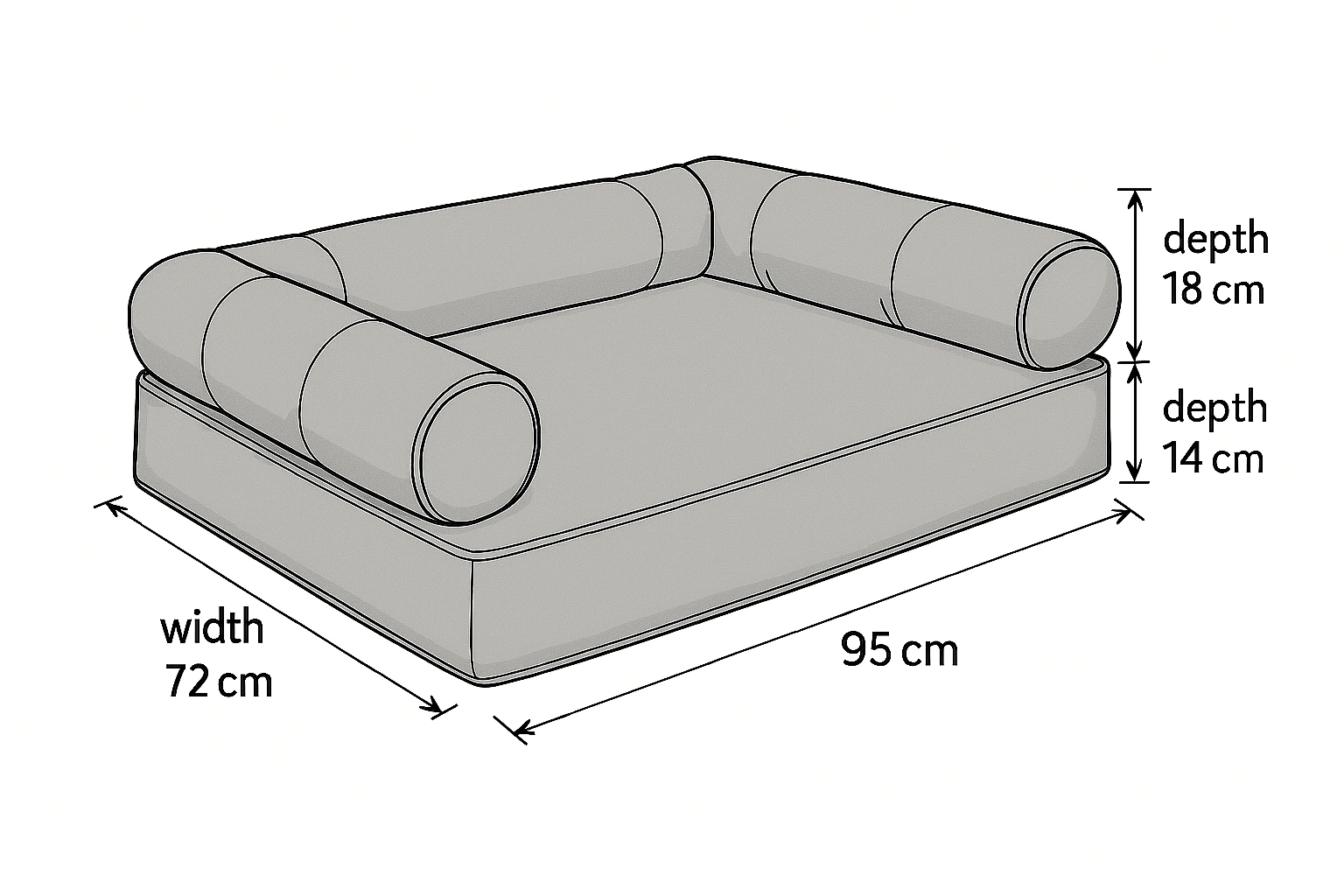 Our medium dog bed offers superior support and comfort. Measuring 95cm x 70cm x 14cm deep - high profile, with the big plush bolster cushions adding an extra 18cm height they are designed to be soft enough to cushion the head, but also strong enough to support the natural contours of the body and provide a secure environment for your dog.